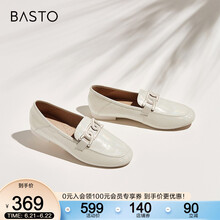 百思图2021春新款商场同款时髦金属饰扣乐福鞋浅口女单鞋RYC29AA1 米色 38