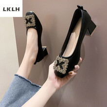 LKLH奶奶鞋女2021年夏季新款高跟方头软皮粗跟方头春款秋晚风法式单鞋 2 黑色(水钻) 40