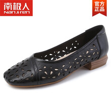 南极人品牌女鞋 眞皮平底镂空女鞋牛筋软底中老年人凉鞋软皮软底中年妈妈鞋单鞋夏 黑色 35