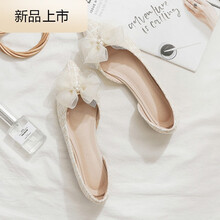 红蜻蜓商场同款新款夏季女夏季新款晚晚鞋百搭网红尖头平底侧空浅口单鞋女仙女风瓢鞋女 杏色 32