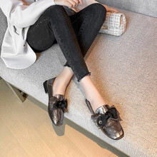 ZHR单鞋女浅口平底百搭女鞋时尚蝴蝶结两穿气质乐福鞋女淑女风春季新款 AW36 枪色 38