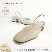 CHARLES&KEITH2021春夏新品CK1-60920238女士简约方头中跟单鞋 Sand沙色 38