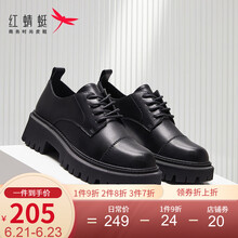 红蜻蜓女鞋2021春季新款小皮鞋女英伦风百搭职业单鞋厚底百搭WTB110191 黑色(皮面) 36