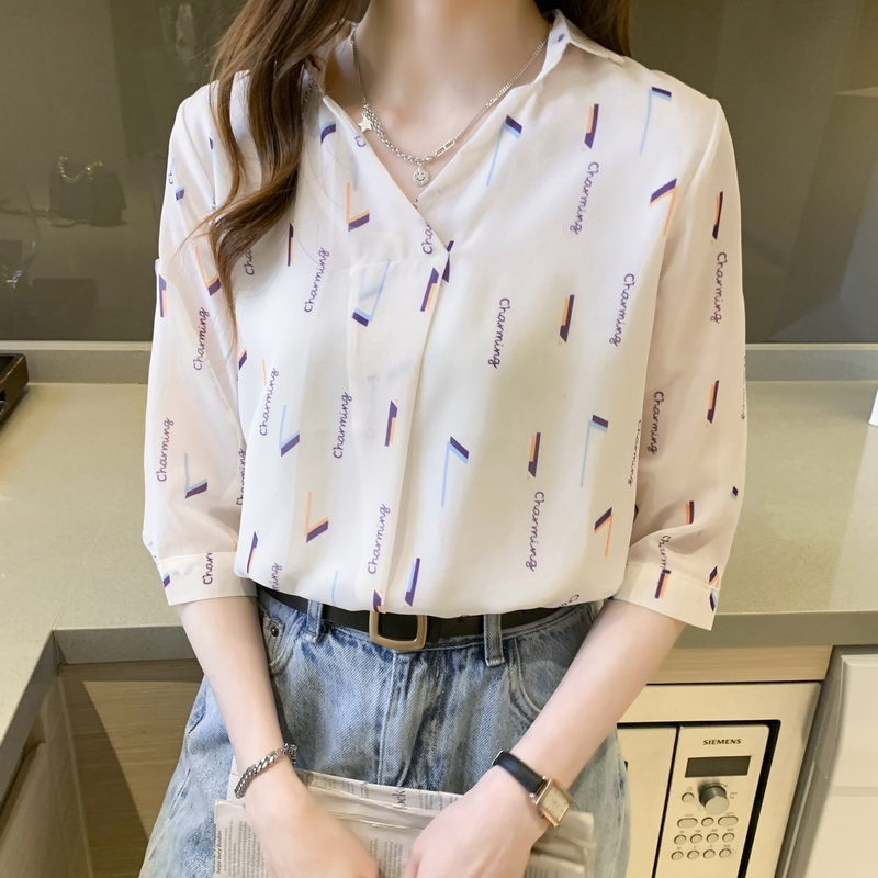 女士雪纺衬衫设计感小众女装春装2021年新款潮短袖上衣薄衬衣夏季