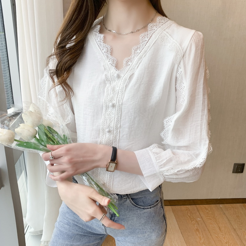 遮肚子雪纺衬衫女装春秋2021年新款潮短袖上衣夏季白色蕾丝打底衫