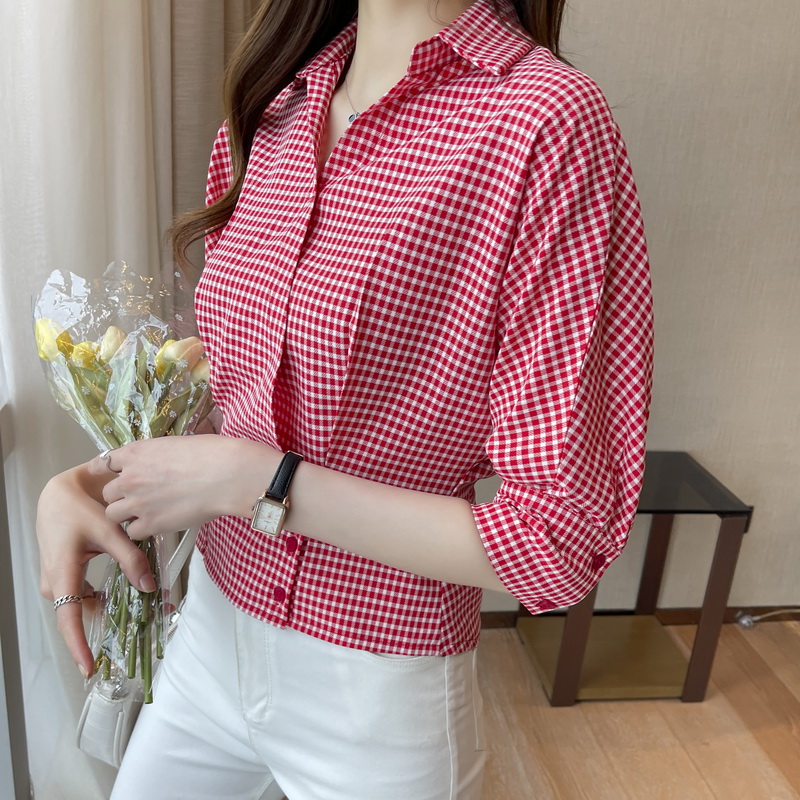 实拍2021夏季新款欧洲站女士中袖衬衫新款时尚设计感百搭洋气衬衣