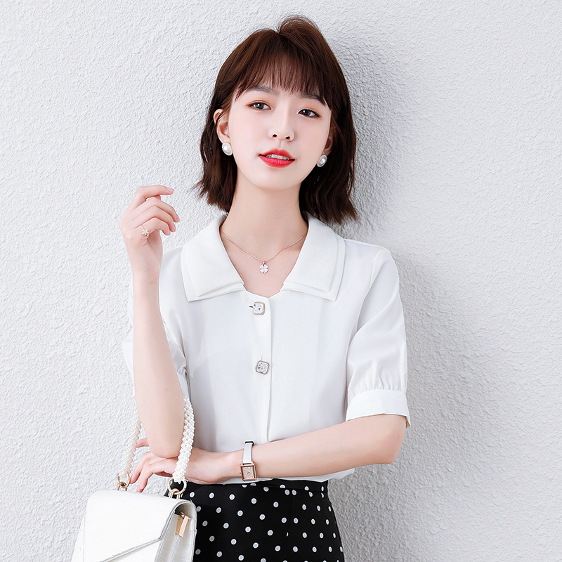 短袖雪纺白衬衫女设计感小众新款2021年夏复古法式上衣职业气质