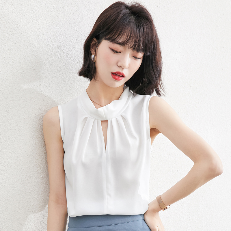 实拍短袖雪纺衬衫夏季女2021年新款小衫新品高档衬衣洋气无袖上衣