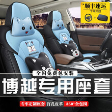 pro专车专用全包围夏季冰丝亚麻四季通用座椅套垫 360°全包+透气网布+头枕腰靠一对+【天空蓝】 博越专用 顺丰直达