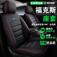 05-21年新老款福克斯两厢三厢专车专用全包围夏季四季通用座椅套垫 原车线条+透气打孔皮革【黑红线】-标准版 福克斯三厢专用