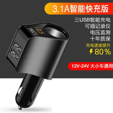 汽车车载电源一拖三多用点烟器插座充电分线器插头usb转接头 【炫酷黑】三USB充电+10年质保 快充3.1A提速80%+三合一充电线