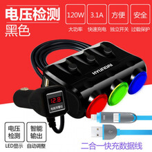 适用于车载点烟器24V转12V一分三 货车挖机24伏一拖三降压器 电源变压器车载 电压检测款黑色+送苹安线