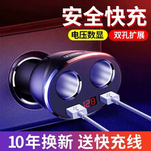 车载充电器点烟器一拖二转换器双USB车充汽车电源多功能插头一拖三车用手机充电头快充扩展插座 【典雅黑】电压监控+双孔扩展