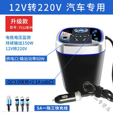 车载充电器逆变220点烟器快充电脑12v多功能笔记本汽车转换器插头 12v转220v杯型【带氛围灯+5A一拖三快充线】