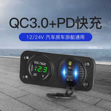 汽车载改装手机充电器QC3.0快充type-c闪充电压表数显船用新品 绿色