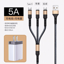 【全国次日达】昂悦三合一数据线充电线一拖三多功能苹果type-c多头手机华为二合一车载器5A超级快充 【1.25米】5A充电器+三合一土豪金