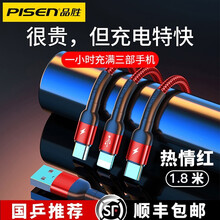 品胜数据线三合一充电线器一拖三手机快充三头适用苹果华为安卓type-c多功能车载多头万能多用通用快冲 热情红1.8米【苹果+安卓+type-c】加粗线芯