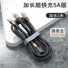AMLLSYE 三合一数据线type-c华为小米快充5a安卓三头多功能一拖三便携苹果车载充电器线加长 加长,2米,【黑金】真5A超级快充--三合一