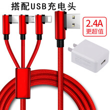 玲魅 数据线三合一Type-C\/安卓弯头车载充电线一拖三数据充电器线正反插1.5米安全快充 弯头一拖三线.宝石红+2.4A充电头
