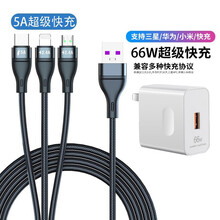 数据线三合一快充充电器一拖三车载万能5A超级快充手机多头多用多功能适用苹果华为type-c安卓三线 5A快充三合一(经典黑2米)+66W超级充电器