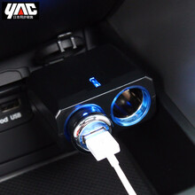 YAC 日本汽车充电器 车载点烟器母座 小轿车用一拖三车充插头一分三电源转换器插座12v 直插式不带线 一拖二 带灯 PZ-365