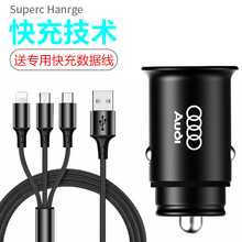 适用2021款新奥迪Q3/A4L/A6L/A8车载USB充电typec转接头U盘转换器 车充+一拖三充电线(双USB接口)