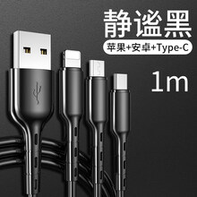 牛壳壳数据线三合一充电器手机快充一拖三适用苹果安卓typec三头车载多用功能加快速3套装二合一拖 黑色1.0米[苹果+安卓+type-c]5A快充