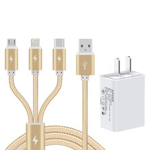 贝乐星辉适用于华为苹果安卓oppo小米vivo通用快充一拖三手机多功能充电器三线合一车载USB三 快充插头+[金色]三合一快充线