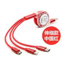 麦硕 一拖三数据线三合一充电器快充多功能手机平果8多头typec车载伸缩 中国红 1m