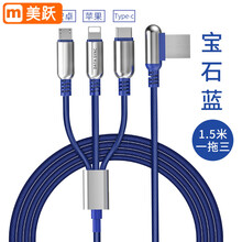 美跃 一拖三数据线三合一快充加长华为三用三头多头多功能充电器通用手机安卓苹果二合一拖车载快速充电线 HK 一拖三 1.5蓝色