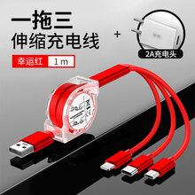 多功能充电器数据线三合一快充万能型通用多头多用一拖三快速苹果安卓华为usb插头车载车用一拖四 幸运红苹果安卓TYPE-C+2A快速充电头套装