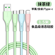 小雨家族 5A超级快充三合一数据线手机一拖三充电器线加长多头多功能车载冲电线苹果华为type-c安卓 三合一【抹茶绿】1.5米/肤感液态/真5A超级快充