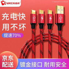 维肯 数据线三合一手机充电线充电器一拖三快充车载一拖二合一适用iphone苹果安卓华为小米一加荣耀 幸运红1.38米-【苹果+安卓+type-c】