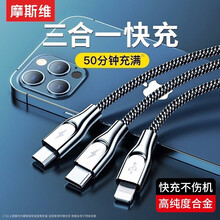 摩斯维 三合一数据线充电器线一拖三苹果安卓type-c手机多头多用快充线车载三头华为小米三星荣耀平板 【type-c+安卓+苹果】同时快充丨加长1.5m