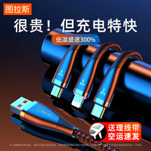 图拉斯 三合一数据线 苹果安卓Type-C手机充电器线一拖三iPhone华为三星小米平板车载便携快充 1.68米 升级款亮黑色【三头同充 / 省时便捷】