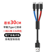 OKEYCP 数据线三合一 苹果Type-c安卓手机充电器线一拖三iPhone小米华为车载电源线 【三头同充】三色易辨认 30CM