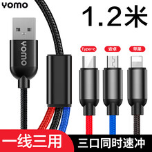 YOMO 苹果安卓type-c数据线三合一快充手机一拖三充电器线 iPhoneXsMax/XR/8/7/小米华为车载USB电源线 黑