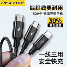 品胜 数据线三合一手机快充电器线苹果安卓Type-C车载一拖三iphone6s/7p/ipad/华为 【三口同充不伤机】黑色 1.2米