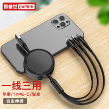 凯普世 三合一伸缩数据线 苹果安卓type-c一拖三快充 适用iphone12/11xsmax小米华为车载手机充电器线1.2米黑
