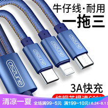 充电数据线三合一快充拖6充电器一拖三车载通用多头多用功能 三合一牛仔蓝1.5米