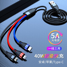 魔风者 超级快充电线三合一数据线5a一拖三多功能40W充电器车载多头小米oppo/vivo手机充电线 【编织纹-三色】一拖三数据线