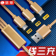 骆尊 苹果安卓Type-c数据线三合一手机线一拖三华为oppo小米vivo平板车载快充便携充电器线 1.2M香槟金【苹果/安卓/Type-C三口】