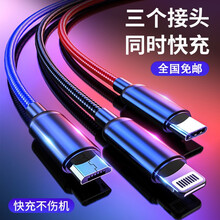 昊微 一拖三数据线5a超级快充手机三合一充电器线多功能车载多用适用华为p40荣耀20小米苹果安卓通用 3A快充【三色区分】 2米