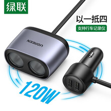 绿联 车载充电器 汽车点烟器一拖四双USB口快充 带扩展口车充转换器通用货车轿车苹果华为小米手机 汽车点烟器一拖四