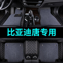 2019款比亚迪唐二代汽车脚垫5座6座7座2018款全新一代唐2代DM专用全包围脚垫改装装饰防水环保 黑色+黑灰色地毯丝【双层+带兜】