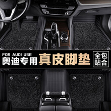 适用于奥迪A6L Q5L Q7 A7 A8L A4L A5 A3 Q3 Q2L汽车脚垫真皮全包围专用 【奥迪专用】-神秘黑-双层-(牛皮材质+法莎绒)
