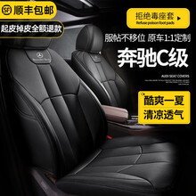 C级专车专用四季通用夏季汽车座垫全包围座椅套 绅士黑【原车纹路全包围双压线定做】【可刺绣车标】 奔驰C级专用定制座套