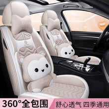 昂科威哈弗h6夏季亚麻透气全包围汽车座套汽车坐垫四季通用冰丝别克凯越君威君越昂科威英朗GT威朗全包座 卡通版卡其色