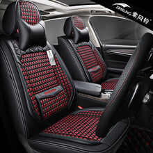 汽车座垫新款皮拼冰丝专用座套全包围四季通用坐垫 红色 日产尼桑轩逸逍客奇骏劲客蓝鸟阳光骐达