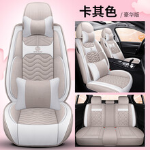 适用于汽车坐垫奔驰C180L C200L E260L GLK300全包四季亚麻通用座垫座套 卡其色-豪华版